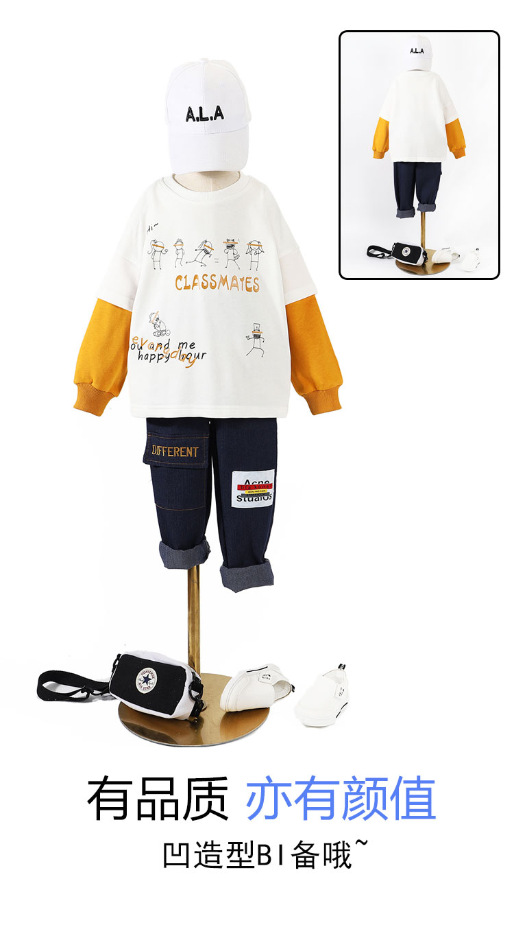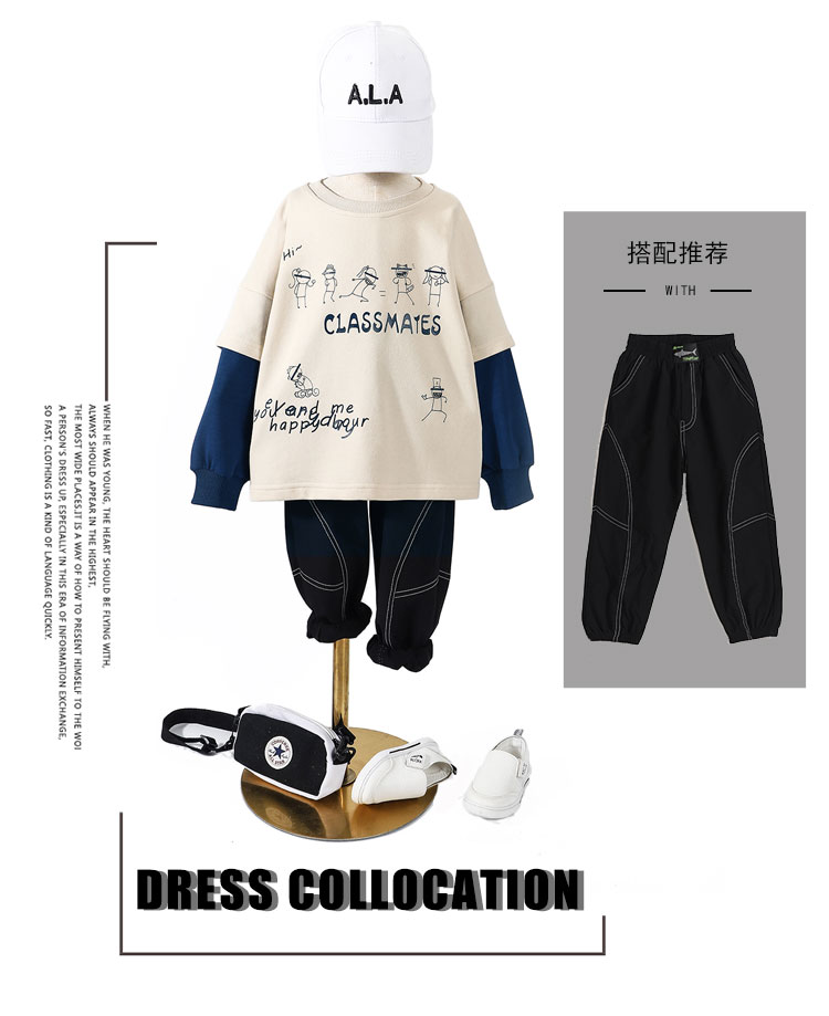 浪莎童裝男童衛(wèi)衣兒童春秋款長(zhǎng)袖2021新款中大童打底衫韓版潮t恤